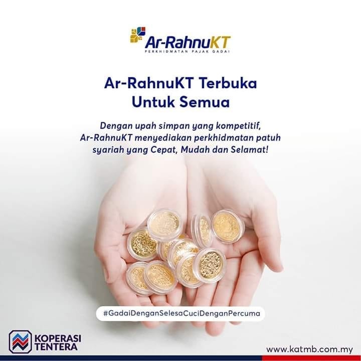 Since 2012, we've been offering a Shariah-compliant pawnbroking service through Ar-Rahnu Koperasi Tentera (Ar-RahnuKT). Both member or the public, our quick and ethical financing is here to help you access cash without 'riba' worries.